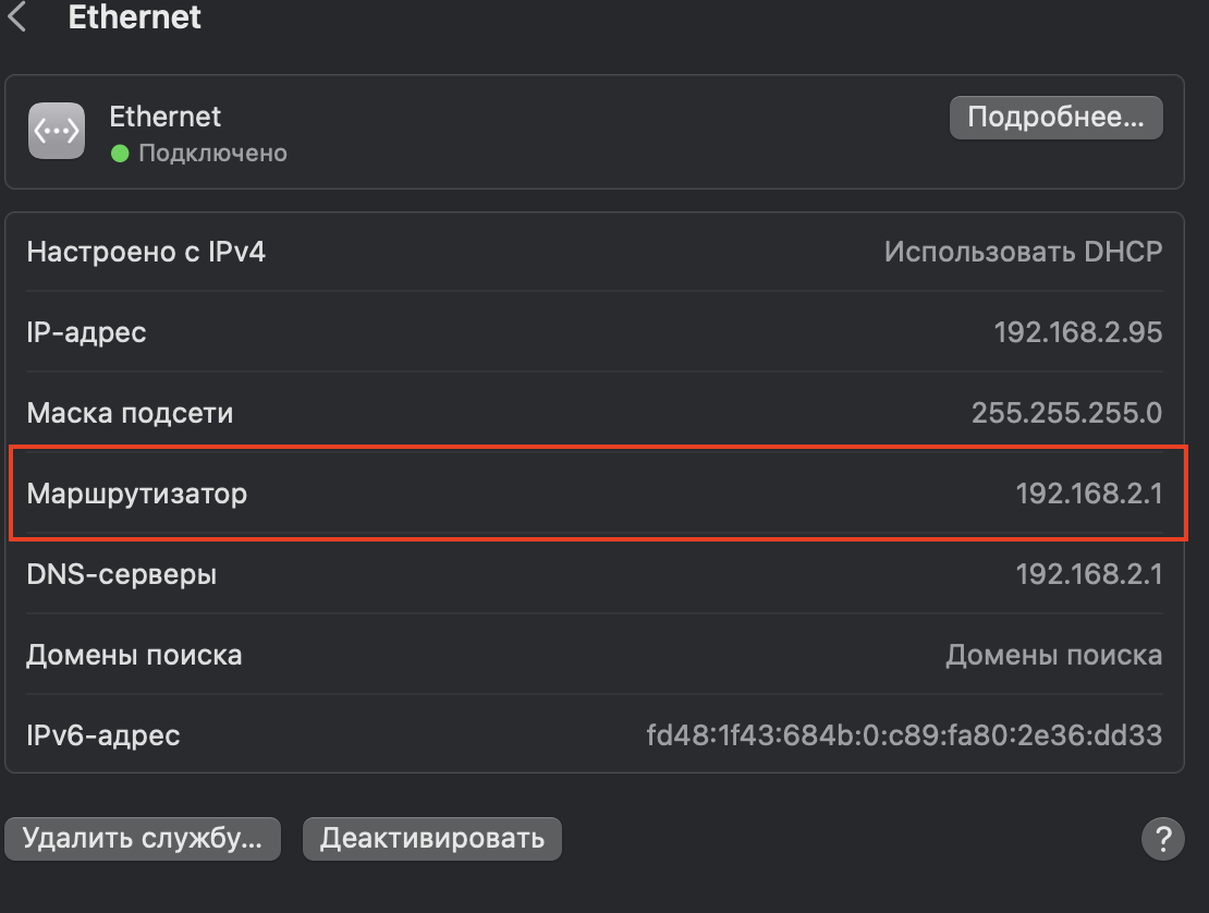 Подключим модем через usb порт в ПК. IP адрес модема присваивается динамически, чтобы узнать IP модема можете перейти в настройки сетевого подключения своей операционной системы и найти пункт «Основной шлюз» либо «Маршрутизатор»