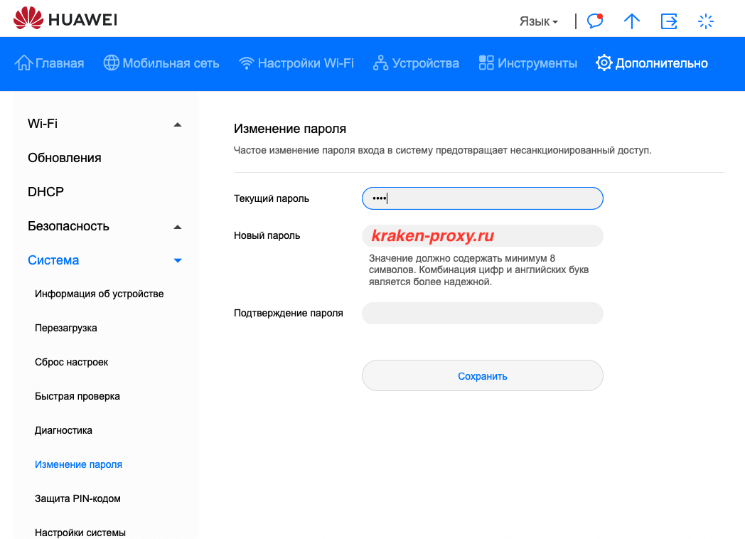 Установите пароль админ панели «kraken-proxy.ru»